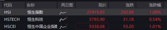港股:截至发稿,恒指涨1.08%,恒科指涨0.54%。