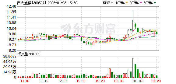 吉大通信(300597)1月28日晚披露2025年度业绩预告,预计2025年实现归属于上市公司股东的净利润-8920万元至-5960万元,上年同期为489.71万元;预计实现扣除非经常性损益后的净利润-9220万元至-6260万元,上年同期为400.13万元。