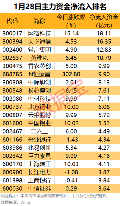 从个股来看,近130股主力资金净流入均超1亿元,其中27股净流入金额均超3亿元。