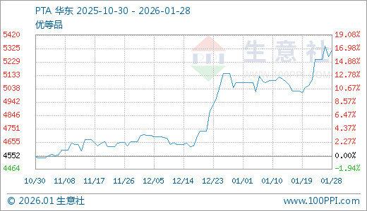 据生意社监测,PTA 01月28日最新价格5314.75元/吨,最近10天上涨5.88%,60天上涨14.09%。