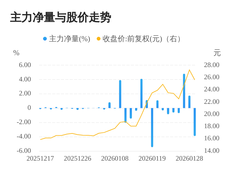 该股今日主力净量为负,且值较大,表明主力大幅流出,主动卖出明显多于主动买入。与此同时,今日换手率较高,主力抛售的嫌疑较大。投顾建议:投资者短期宜合理控制仓位,谨慎为佳。
