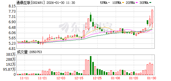 通鼎互联上演“地天板”行情,股价从跌停拉升至涨停,截至11:01,该股成交量1.92亿股,成交额13.74亿元,振幅达19.89%,换手率16.30%,涨停板封单金额为11.66亿元。(数据宝)