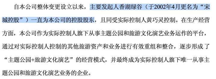 杭州宋城集团控股有限公司前身为宋城演艺的主要发起人、控股股东“杭州香湖绿谷旅游开发公司(于2002年4月更名为“宋城控股”),实控人为黄巧灵。