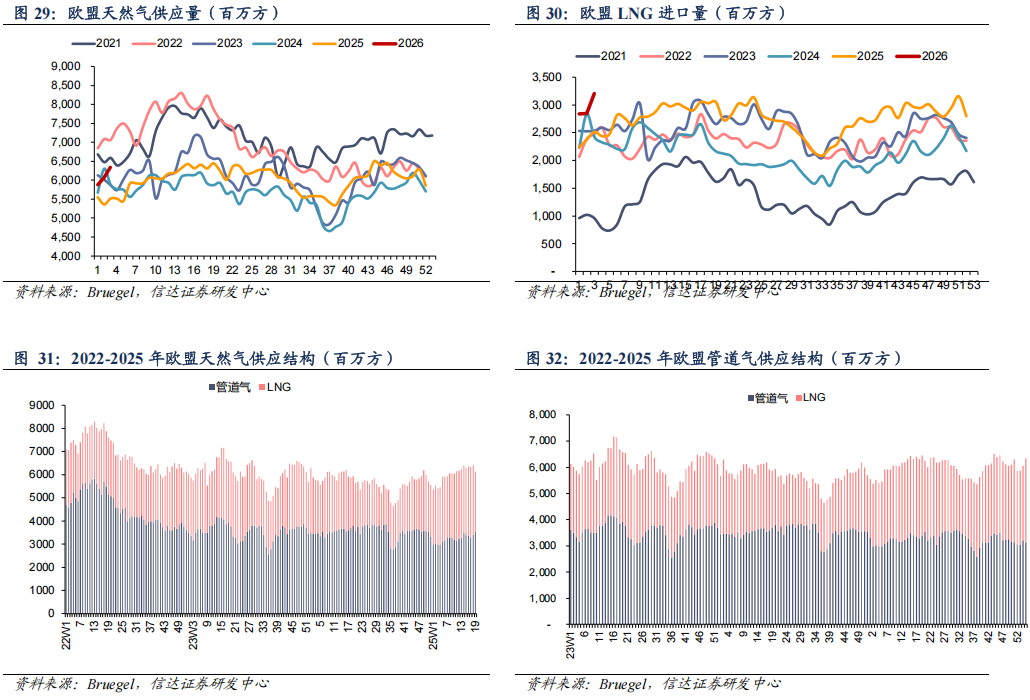 ● 供给:欧盟天然气供应量周环比上升
