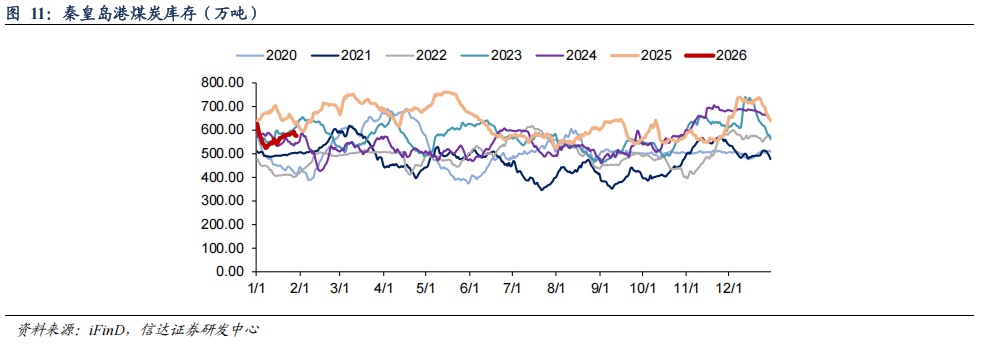 ● 港口煤炭库存:截至1月29日,秦皇岛港煤炭库存575万吨,周环比下降5万吨。