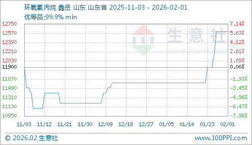 据生意社监测,环氧氯丙烷02月01日最新价格12600.00元/吨,最近10天上涨8.62%,60天上涨12.50%。