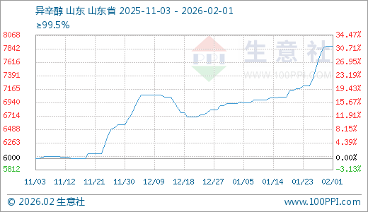 据生意社监测,异辛醇02月01日最新价格7880.00元/吨,最近5天上涨4.79%,10天上涨9.95%,15天上涨12.04%,20天上涨12.84%,30天上涨13.93%,60天上涨14.76%。