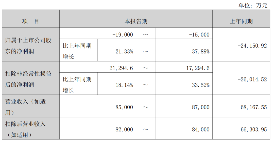 翰博高新1月30日晚间披露2025年度业绩预告,预计2025年归母净利润亏损5500万元至9000万元,上年同期亏损2.15亿元;扣非净利润亏损7700万元至1.2亿元,上年同期亏损2.37亿元。