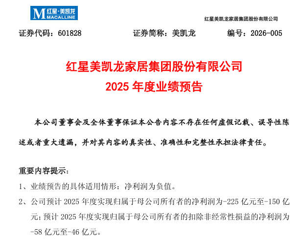 1月23日,红星美凯龙披露了大幅预亏的2025年度业绩预告,引发市场广泛关注。