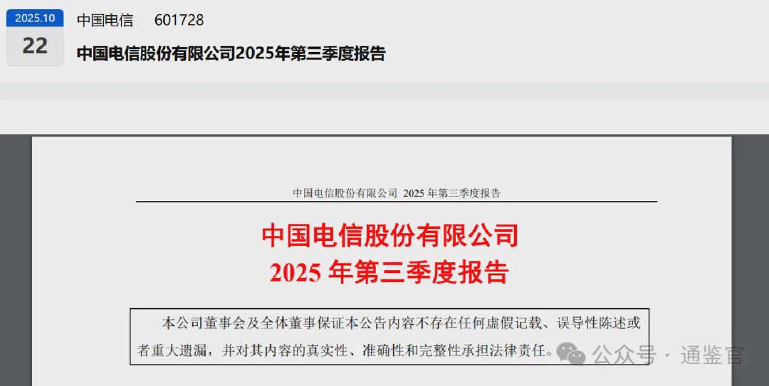 我是财官,在我经手的无数财报谜案中,有一类最难破解:它们表面平静如水,数据四平八稳,但当你靠近聆听,却能听见地平线之下,传来未来科技沉闷的轰鸣。中国电信的最新案卷,正是如此。$中国电信(601728)