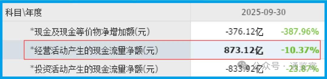 然而,一个极其反常的细节,像一道裂痕出现在岩层之上:销售商品收到的现金净额竟高达873.12亿元,是同期净利润的近3倍!