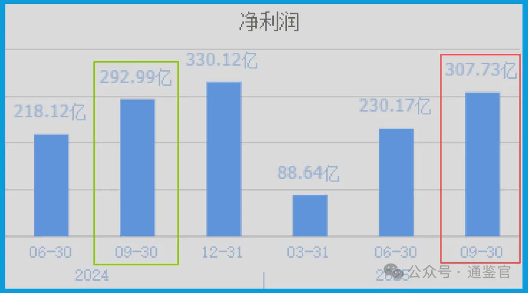 翻开首页,一切“正常”得令人乏味:三季度净利润307.73亿元,同比增长5.03%;