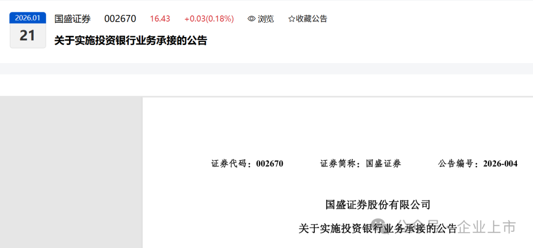 一、公司定于2026年1月22日起,将新国盛证券确定为投资银行业务的业务开展主体,由新国盛证券按照协议约定和相关监管要求为原国盛证券客户提供相应投资银行服务,完整承接相应业务。