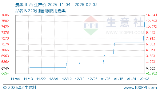 据生意社监测,炭黑02月02日最新价格7600.00元/吨,最近5天上涨5.56%,30天上涨11.60%。