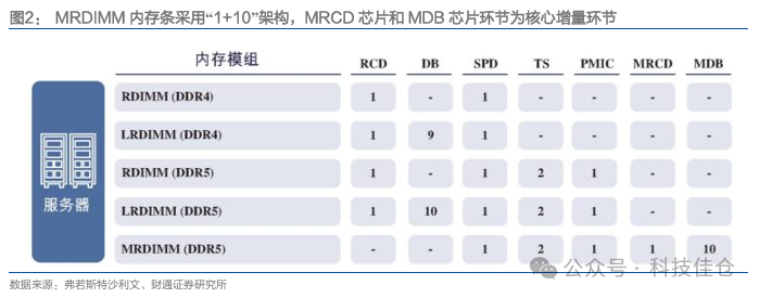 1 服务器CPU配套内存模组向MRDIMM发展,看好MRCD芯片与MDB芯片环节