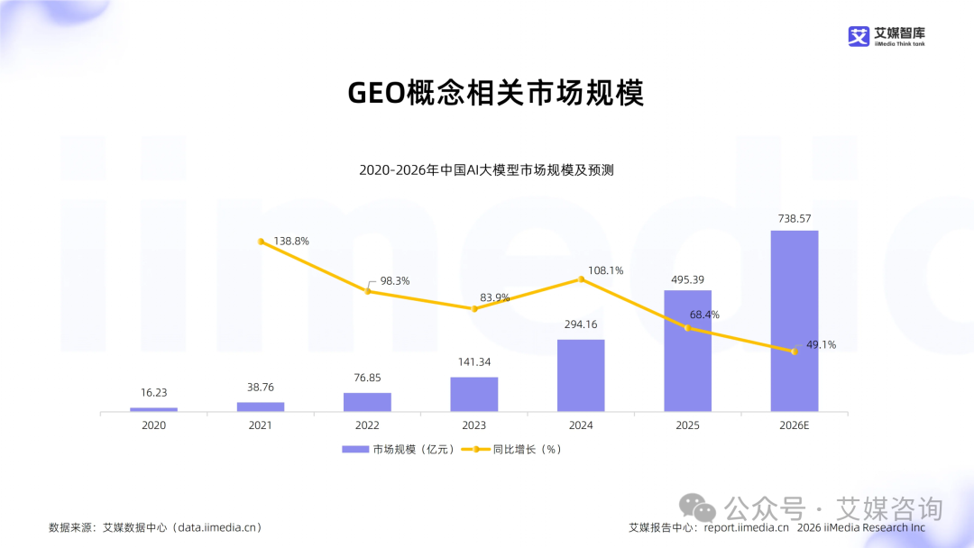 近年来,生成式引擎优化(GEO)作为AI时代数字营销核心基础设施的战略定位日益明确,全球新经济产业第三方数据挖掘和分析机构iiMedia Research(艾媒咨询)发布的《2025年中国GEO产业发展状况及重点企业大数据监测报告》显示,2025年中国AI大模型市场规模达495.39亿元,同比大幅增长68.40%,实现跨越式发展,而在AI大模型产业高速发展的带动下,GEO概念板块的行业格局也呈现出鲜明特征,2025年前三季度该板块营收前三的企业合计占据行业营收64.70%,行业营收集中度处于较高水平。