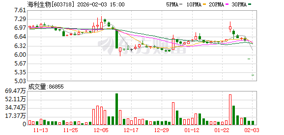 海利生物(603718)今日跌停,全天换手率1.34%,成交额4568.57万元。龙虎榜数据显示,营业部席位合计净卖出2598.76万元。