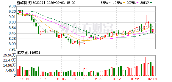 雪峰科技:截至2026年1月31日股东总户数43698户