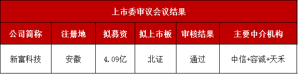 新富科技(首发)获通过