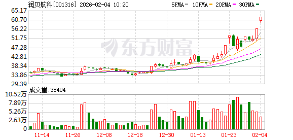润贝航科再度涨停,5个交易日内录得3个涨停,累计涨幅为30.06%,累计换手率为24.56%。截至9:33,该股今日成交量297.93万股,成交金额1.83亿元,换手率2.68%。最新A股总市值达71.33亿元,A股流通市值68.96亿元。