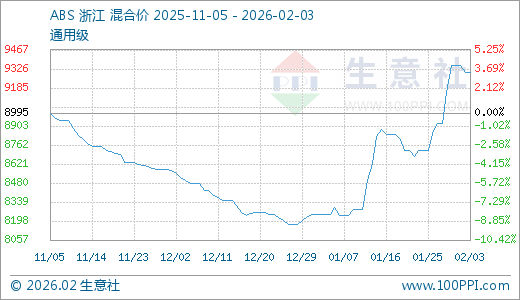 据生意社监测,ABS02月03日最新价格9300.00元/吨,最近10天上涨6.59%,30天上涨12.73%。
