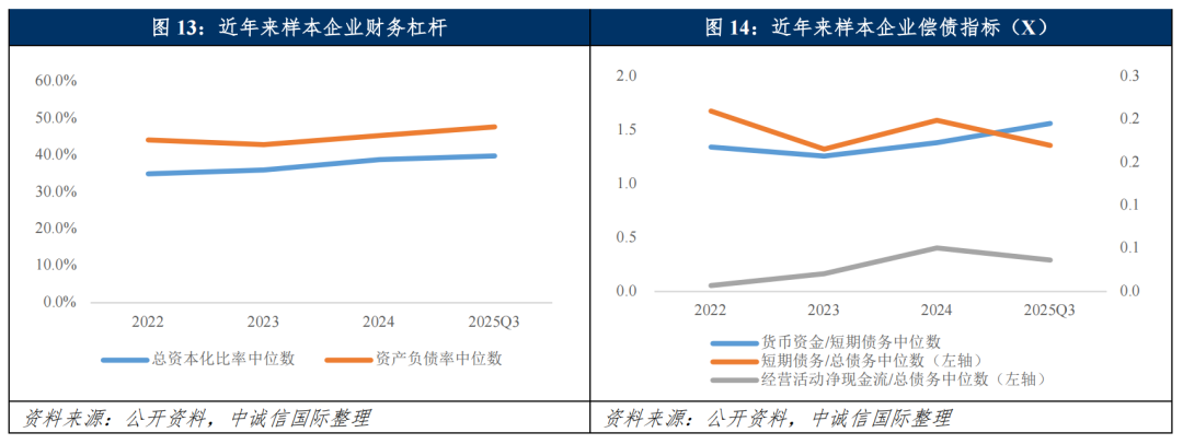 2025年以来,机场业务量持续增长进一步改善样本企业经营业绩,同时项目建设周期拉长、宽松的资本市场环境、持续获得政府及民航局的资金支持有效缓解了企业项目建设压力,财务杠杆虽小幅增长但仍合理,偿债能力亦处于较好水平。
