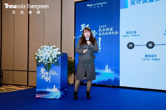 随后,天合绿建总工程师罗多、天合绿建解决方案中心系统设计经理彭欢佳分别介绍了2026年度BIPV产品与系统解决方案的前瞻布局,涵盖天合绿建自主研发的TEG光伏平瓦、TEG彩色双玻组件、TEG彩色光电玻璃、TEG光伏声屏障等多类产品,以及光伏车棚、光伏围墙、光伏工业墙等多类系统,展示了公司在绿色建材与光伏融合方面的领先实力。同时,天合绿建正全力从“产品提供者”向“解决方案赋能者”进化,所推出的一系列创新性系统解决方案,旨在拓展应用边界、提升项目价值与落地效率。无论是产品或解决方案,都离不开全流程质量保障体系,天合绿建以严控供应链源头为核心,依托多项国际国内权威认证,确保产品从生产到交付的可靠性与安全性,将严谨的质量管控转化为合作伙伴的市场信任与长期竞争力。