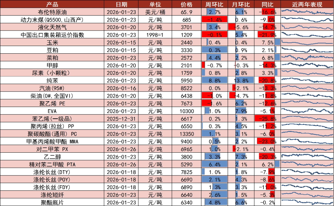 产业链周度价格跟踪(括号为周环比变化)