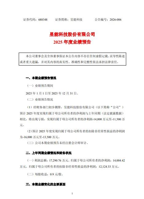 1月30日,昱能科技(688348)发布2025年业绩预告。