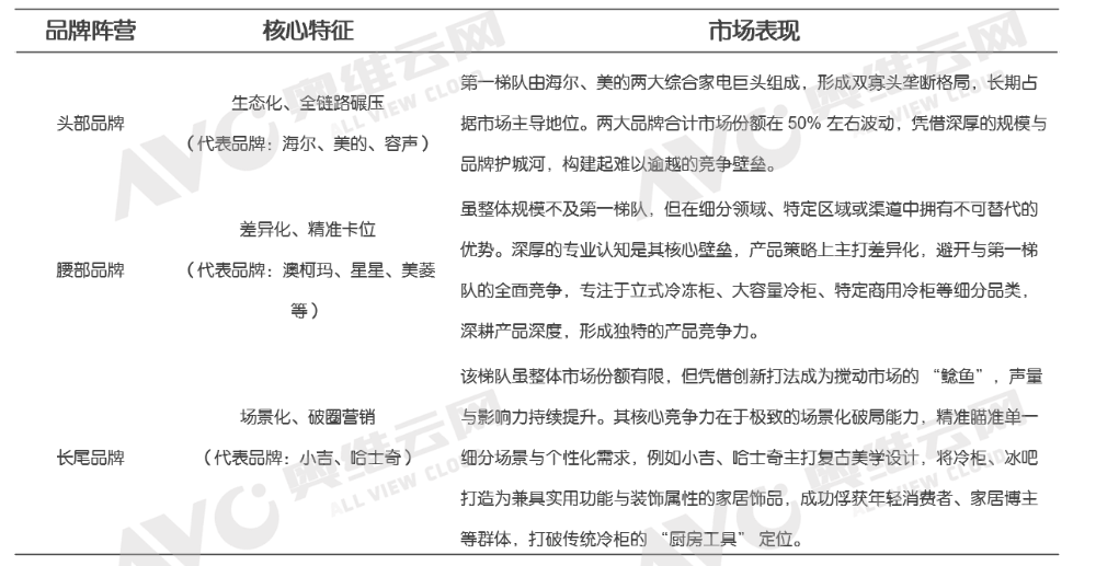 中国冷柜市场已形成清晰三级梯队,各梯队凭借差异化优势占据对应生态位,竞争逻辑各具特色,构成多元稳固的行业格局。