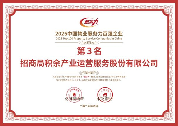 截至2025年末,招商积余稳居“中国物业服务企业综合实力500强TOP3”“中国物业服务力百强企业TOP3”,孵化培育了5户国家高新技术企业。