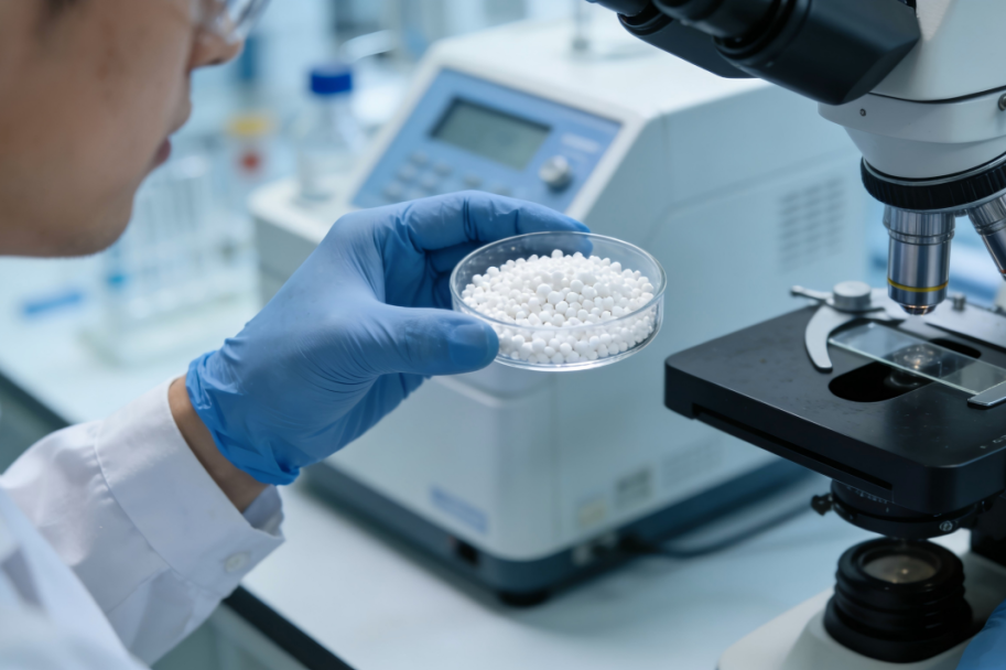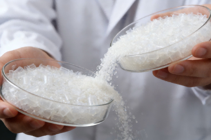 卫星化学生产的聚苯乙烯塑料颗粒实物图,颗粒均匀、品质稳定,为试料合作提供核心物料支撑