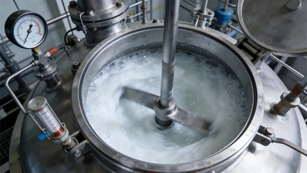 车间内生产聚苯乙烯的反应釜作业场景