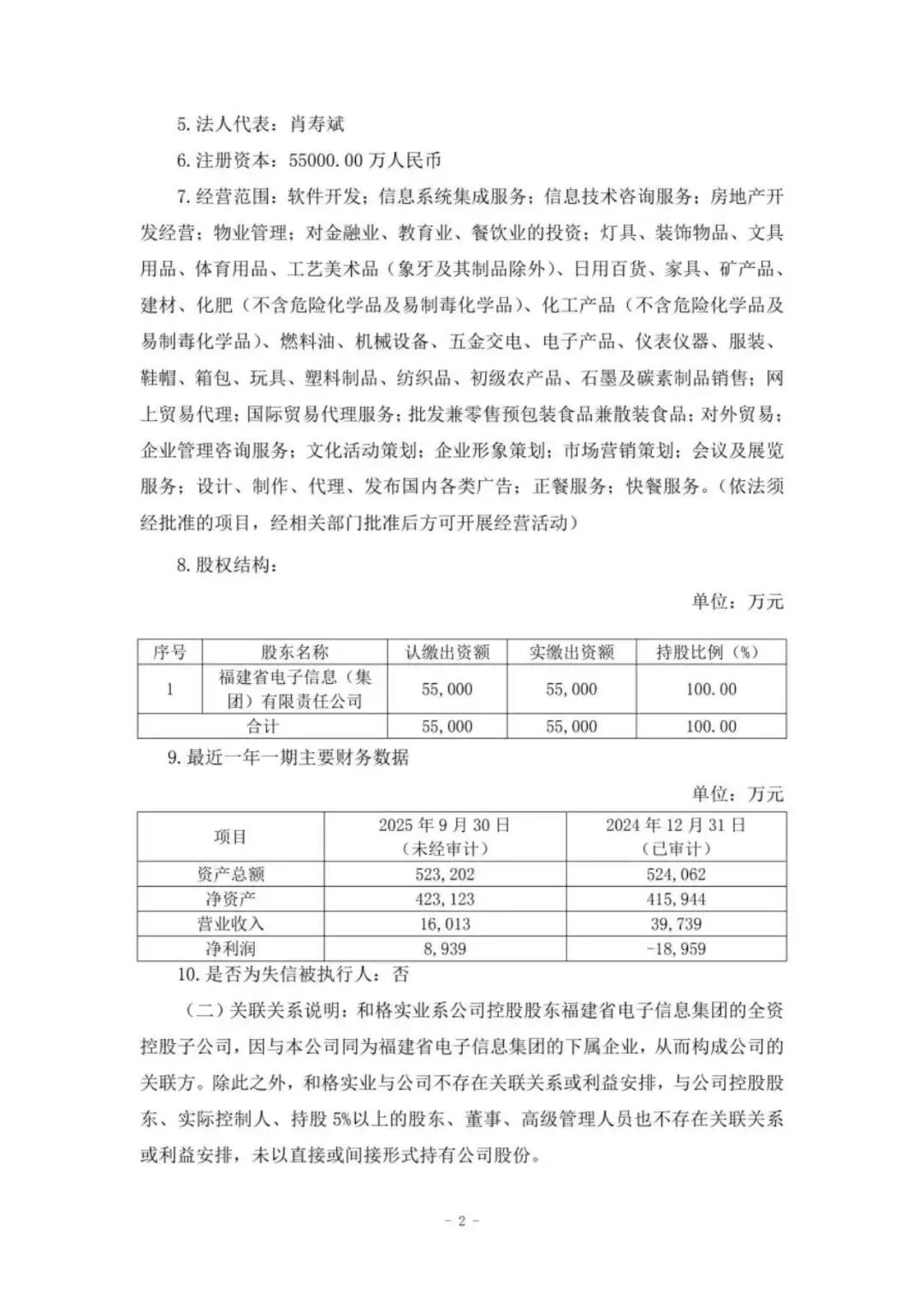 福建省和格实业集团为公司控股股东福建省电子信息(集团)有限责任公司之全资控股子公司。根据相关规定,本次租赁事项构成关联交易,但不构成重大资产重组。