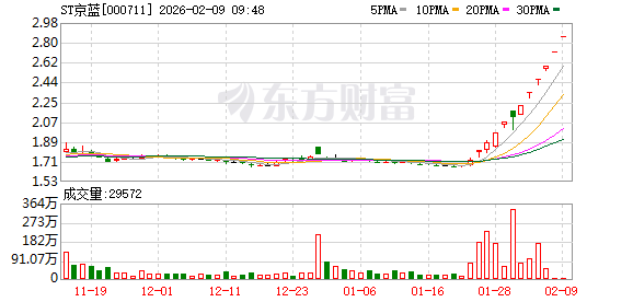 ST京蓝(维权)再度涨停,11个交易日内录得9个涨停,累计涨幅为64.74%,累计换手率为61.95%。截至9:25,该股今日成交量220.69万股,成交金额628.97万元,换手率0.10%。最新A股总市值达81.42亿元,A股流通市值65.14亿元。
