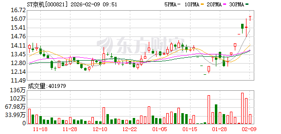 ST京机再度涨停,6个交易日内录得4个涨停,累计涨幅为25.87%,累计换手率为52.07%。截至9:25,该股今日成交量357.99万股,成交金额5817.34万元,换手率0.59%。最新A股总市值达101.22亿元,A股流通市值98.26亿元。