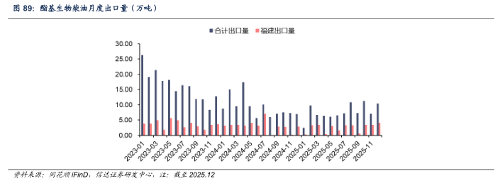 生物柴油出口量:截至2025年12月,中国生物柴油(酯基)出口量为10.47万吨,较上月+3.34万吨,其中福建生物柴油(酯基)出口量为4.07万吨,较上月+0.61万吨。