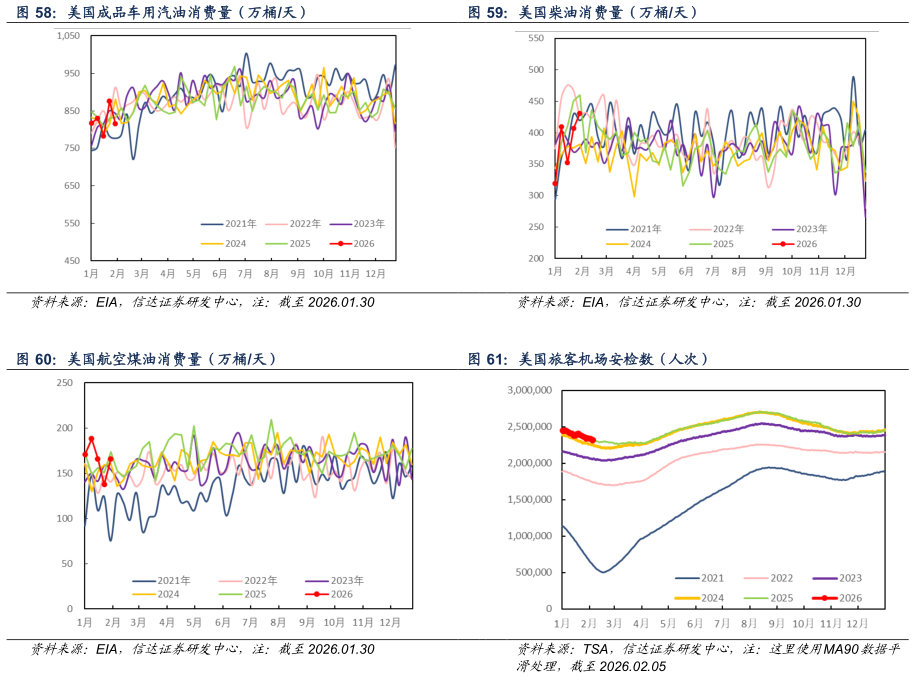 出行数据:截至2026年02月05日,美国周内机场旅客安检数为1425.11万人次,较上周增加136.68万人次(+10.61%)。