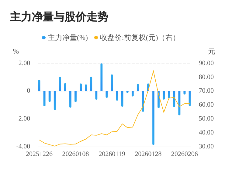 该股今日主力净量为负,且值较大,表明主力大幅流出,主动卖出明显多于主动买入。与此同时,今日换手率较高,主力抛售的嫌疑较大。投顾建议:投资者短期宜合理控制仓位,谨慎为佳。