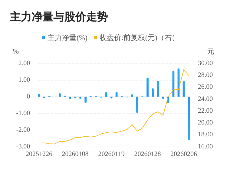 该股今日主力净量为负,且值较大,表明主力大幅流出,主动卖出明显多于主动买入。与此同时,今日换手率较高,主力抛售的嫌疑较大。投顾建议:投资者短期宜合理控制仓位,谨慎为佳。