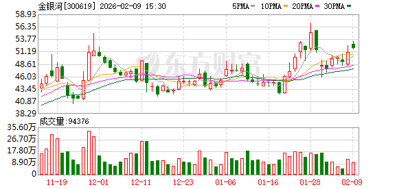 证券时报·数据宝统计显示,金银河今日收盘价为51.85元,上涨1.51%,日换手率为6.49%,成交额为4.93亿元,全天主力资金净流出41.19万元,近5日该股累计上涨8.93%,近5日资金合计净流入6074.37万元。