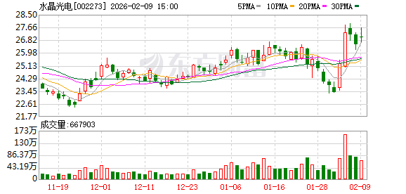 证券时报·数据宝统计显示,水晶光电今日收盘价为27.02元,上涨1.77%,日换手率为4.90%,成交额为18.11亿元,全天主力资金净流出1.37亿元,近5日该股累计上涨15.57%,近5日资金合计净流入4.42亿元。