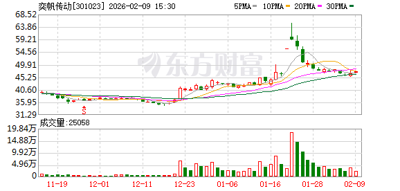 奕帆传动:截至2026年1月30日公司股东人数为14888户