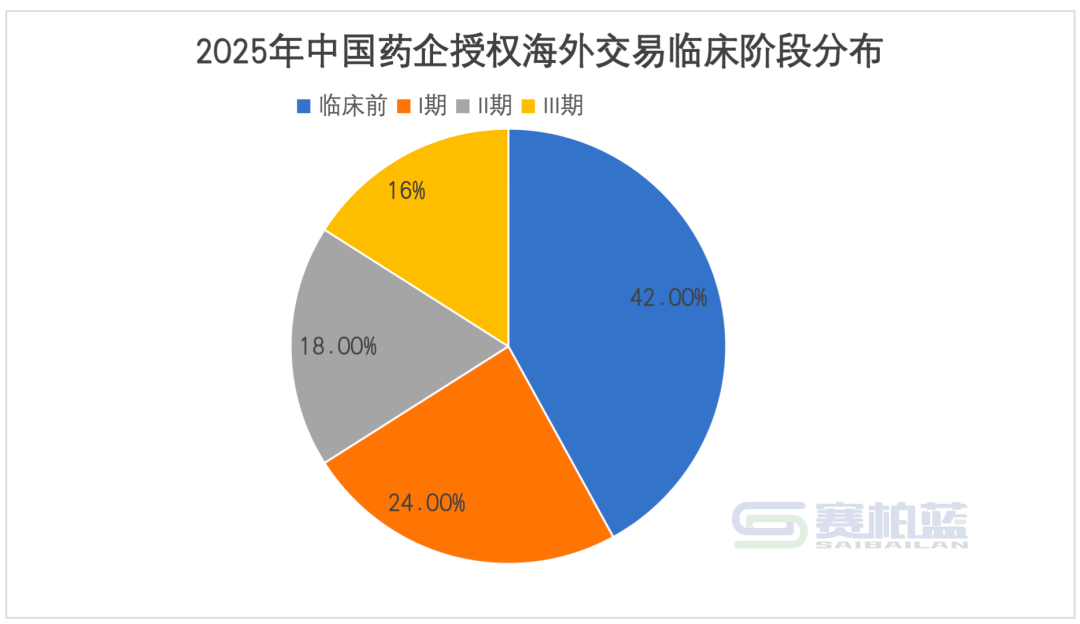 II期和III期项目成为大额交易的“主力军”。这类资产通常有较为完整的临床数据包,能够较为准确地评估其市场潜力和风险水平。翰森制药将处于NMPA III期的HS-20094授权给再生元,总金额达20.1亿美元;石药集团将多个临床前至II期阶段的产品打包授权给阿斯利康,总金额达53.3亿美元。