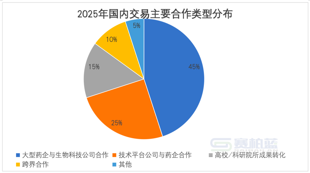 与火爆的出海交易相呼应,2025年中国国内生物医药BD交易也呈现活跃态势,境内交易占比达到30%,交易数量超过100笔。