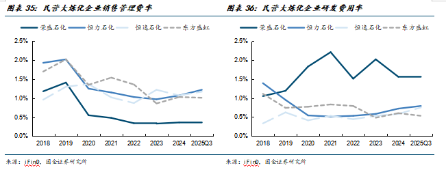 公司作为国内民营大炼化的龙头企业之一,其优秀的费用控制能力在可比公司中十分突出,公司的销售管理费率在大炼化企业中的优势十分明显;公司的研发费率在同行中也表现优异,充分体现了公司作为民营炼化龙头企业的综合实力。