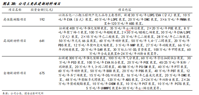 3、一体化优势促进减油增化,在建新材料项目支撑公司新增长。
