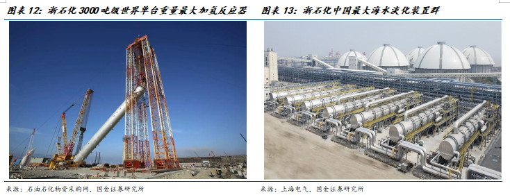 浙石化成立于2015年6月18日,是由公司控股(持股比例51%)国企参股的混合所有制企业。浙石化4000万吨/年炼化一体化项目位于舟山绿色石化基地内,项目规划总面积41万平方公里,总投资超3000亿元,是全国单体规模最大的炼化一体化项目,在全球的炼油产能规模来看也位于前列。4000万吨炼化一体化项目一次规划设计,分两期实施,项目建设选用当今世界最先进的工艺技术和生产装备,例如世界单系列规模最大的芳烃(年加工240万吨PX)装置、世界单台重量最大的锻焊结构加氢反应器、中国最大海水淡化装置群(54.5万吨/天)等;重点发展芳烃、乙烯及下游深加工项目,生产市场紧缺的化工新材料、高附加值化学品。目前生产PX、高端聚烯烃、PC、橡胶、ABS等30多类炼油化工产品,副产国六汽柴油、航煤等。