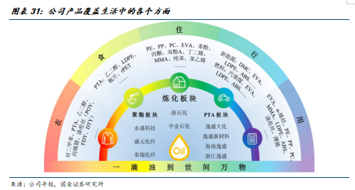 公司成立于1995年,是中国民营石油化工龙头企业之一。经过多年在石化领域的深耕,公司已经实现了“原油-芳烃/烯烃-聚酯”上下游大炼化完整产业链,产品种类丰富、规格齐全,涵盖了新能源、新材料、有机化工、合成纤维树脂橡胶、油品等多个领域,做到了“从一滴油到世间万物”,覆盖了衣食住行用等生活中的方方面面。