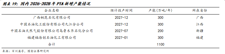 由于PTA行业持续亏损,PTA环节率先启动行业反内卷自律;2025年10月27日,工信部原材料工业司发布《关于召开精对苯二甲酸PTA及瓶级聚酯切片产业发展座谈会的通知》:为防范化解精对苯二甲酸(PTA)及瓶级聚酯切片行业内卷式竞争,促进产业平稳运行。要求各家企业提前材料,内容包括:PTA及瓶级聚酯切片2024年及2025年1-9月产能、产量、效益(加工费)、消费量等,以及在建项目情况等,以及有关防范行业反内卷的措施建议。PTA行业未来三年预计新增产能1100万吨,均预计于2027年投产,2026年行业暂无新增产能,PTA产品盈利有望得到改善。